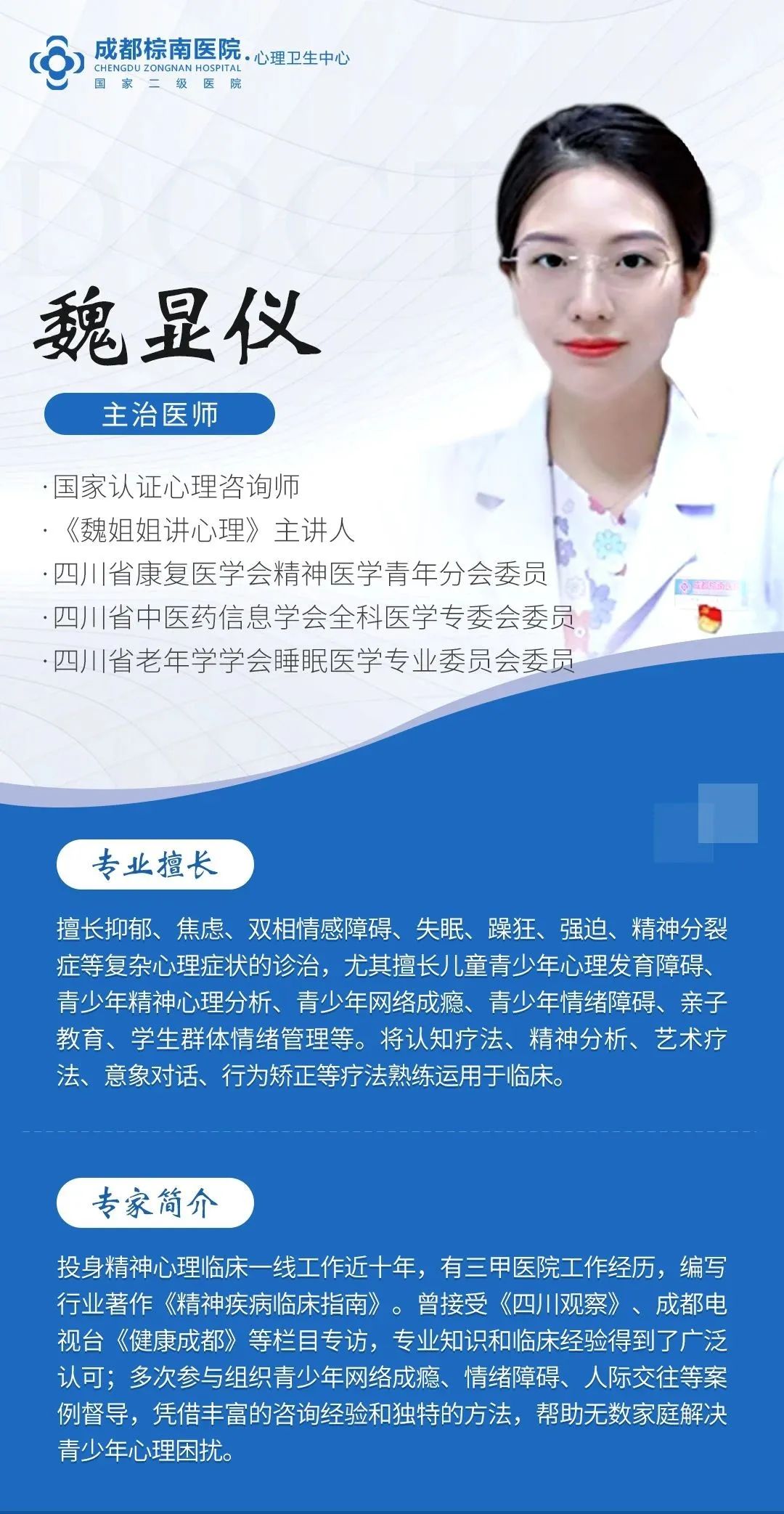 祝贺!成都棕南医院“魏姐姐精神心理专业团队”再添名医!