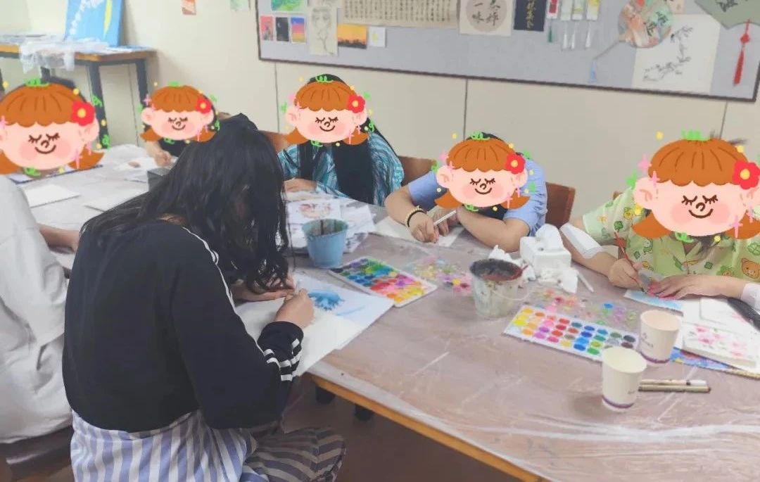 在色彩斑斓的彩绘区,大家化身为小小的艺术家,手握画笔,尽情挥洒着自己的创意与想象。抑郁症患者小玉(化名)在治疗师耐心和引导下,她笔下的世界悄然变化:从刚入院时的灰暗色块逐渐被明快的黄、温暖的红所替代,构图也从拘谨走向舒展。